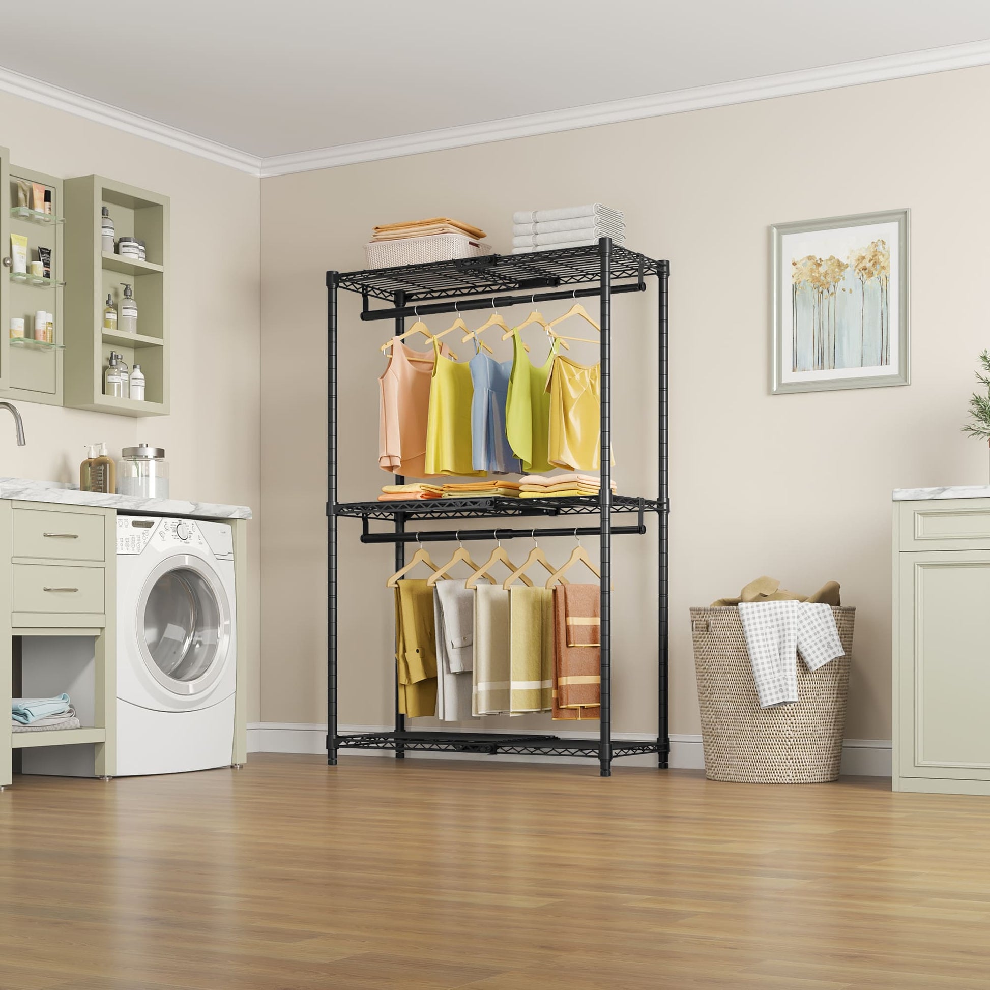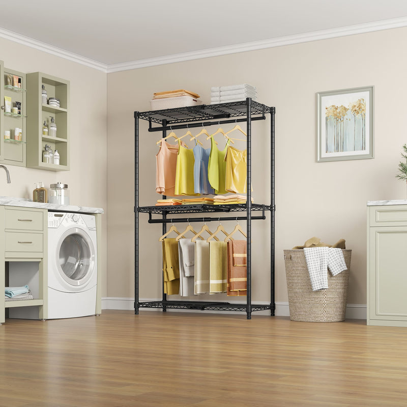 - STURDY & RELIABLE CLOSET ORGANIZER: Made of high quality iron, it features stable, sturdy and reliable freestanding closet system. Each hanging rod can support up to 75 lbs. Easy access in bedroom, cloakroom, clothing store, laundry room, walk-in closet and more.