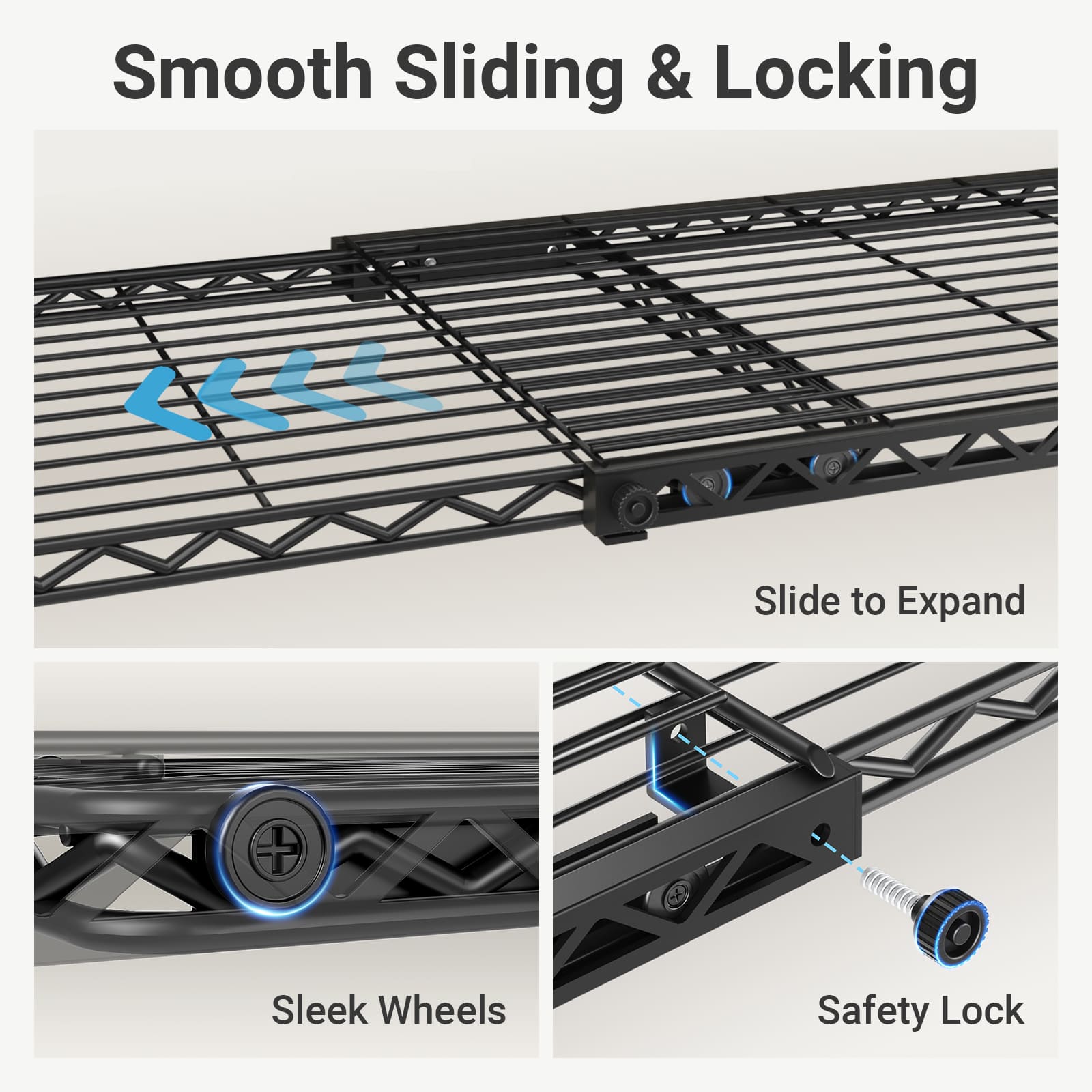 - Flexible Adjustment & Secured Locking: All the clothing rack wire shelves and hanging rods can be lengthened or shortened (24" to 41") based on your needs. They are equipped with secured locking gadgets, eliminating the annoyance of overextending